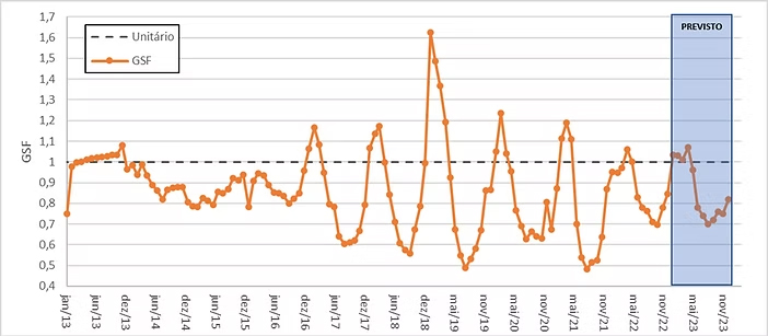 De igual forma em 2023 é previsto novamente que o GSF esteja na casa de 86%, portanto, existem questões muito maiores que o déficit hídrico contribuindo para essa situação.
