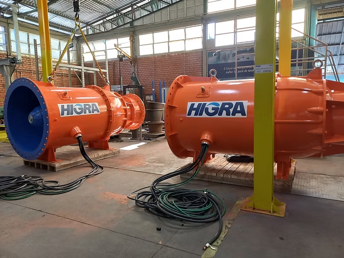 Fabricado pela Higra, de São Leopoldo (RS), o produto que é comercializado com a denominação de Turbo Geradores Anfíbios (TGAs) é fabricado com turbinas Francis e Kaplan e pode ser associado a turbinas tipo bulbo convencional.